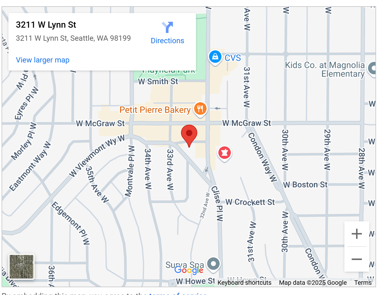 Use the following link for Google Maps directions to 3211 West Lynn St. Seattle Wa, 98199